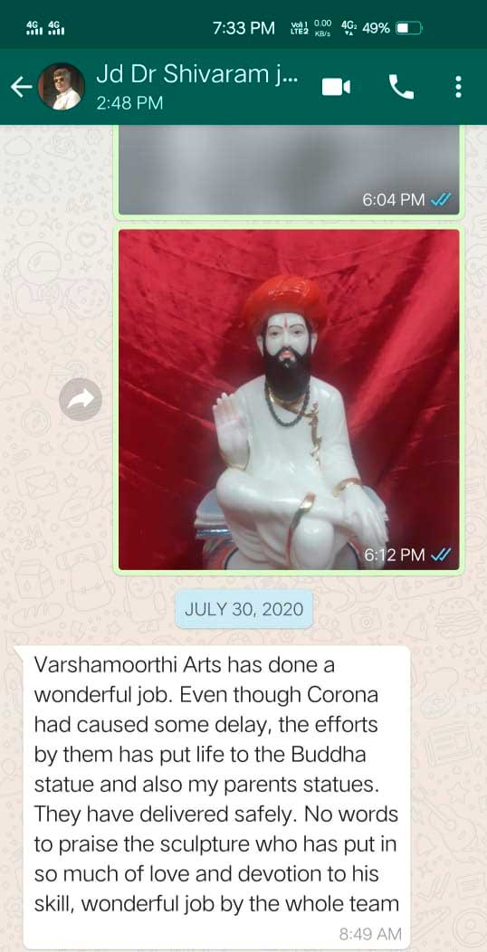 “Varshamoorthi Arts has done a wonderful job. Even though Corona had caused some delay, the efforts by them has put life to the Buddha statue and also my parents statues. They have delivered safely. No words to praise the sculpture who has put in so much of love and devotion to his skill, wonderful job by the whole team"